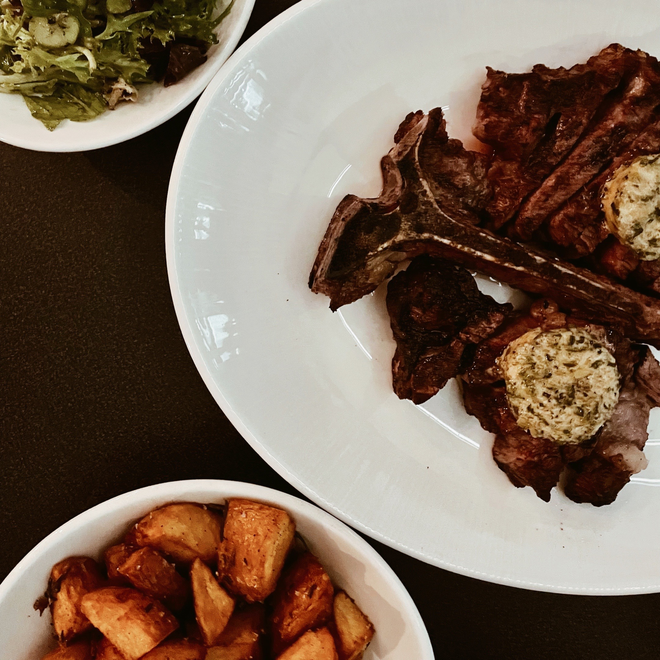 Speaking of food, we started our night with a glass of Malbec and a bowl oil drenched olives. Uncomplicated but extremely tasty. We then opted to share the bistecca alla fiorentina – a charcoal cooked 900g cut of black angus, served with a herbed Chianti butter – along with a broad bean salad with zingy vinaigrette dressing and roasted potatoes with rosemary salt. It was stunning – beautifully cooked meat full of flavour, that literally melted in your mouth, tempered with basic but well executed sides. We finished by sharing a spiced dark chocolate tart and a cheese platter.